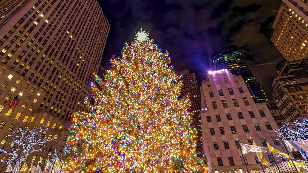 Der Weihnachtsbaum vor dem Rockefeller Center in New York ist wohl einer der berühmtesten. 50.000 bunte Lichter und ein Swarovski-Stern an der Spitze der Tanne sorgen für eine ganz besondere Weihnachtsstimmung in der Stadt. Die Erleuchtung wird mit einer Zeremonie gefeiert, die live im Fernsehen mitverfolgt werden kann. Unter dem Weihnachtsbaum befindet sich eine Eisbahn – dort kann man im Funkeln der Weihnachtslichter Schlittschuhlaufen.
