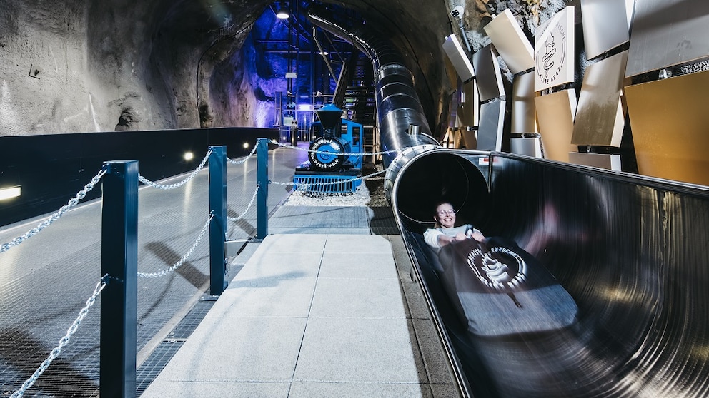 64 Meter hoch und 170 Meter lang ist sie, und hat einen ganz besonderen Clou. Denn auf der Schlossbergrutsche rast man mit bis zu 25 Kilometern pro Stunde mitten durch den namensgebenden Hausberg selbst. Der ganze Spaß dauert etwa 40 Sekunden, aber die haben es laut Wolfgang Brandner, Pressesprecher der Betreiberfirma Diesel GmbH, durchaus in sich: „Gerade im unteren Abschnitt wird es doch ziemlich rasant, und mitunter hat man das Gefühl, sich im freien Fall zu befinden“, sagt er im Gespräch mit TRAVELBOOK.